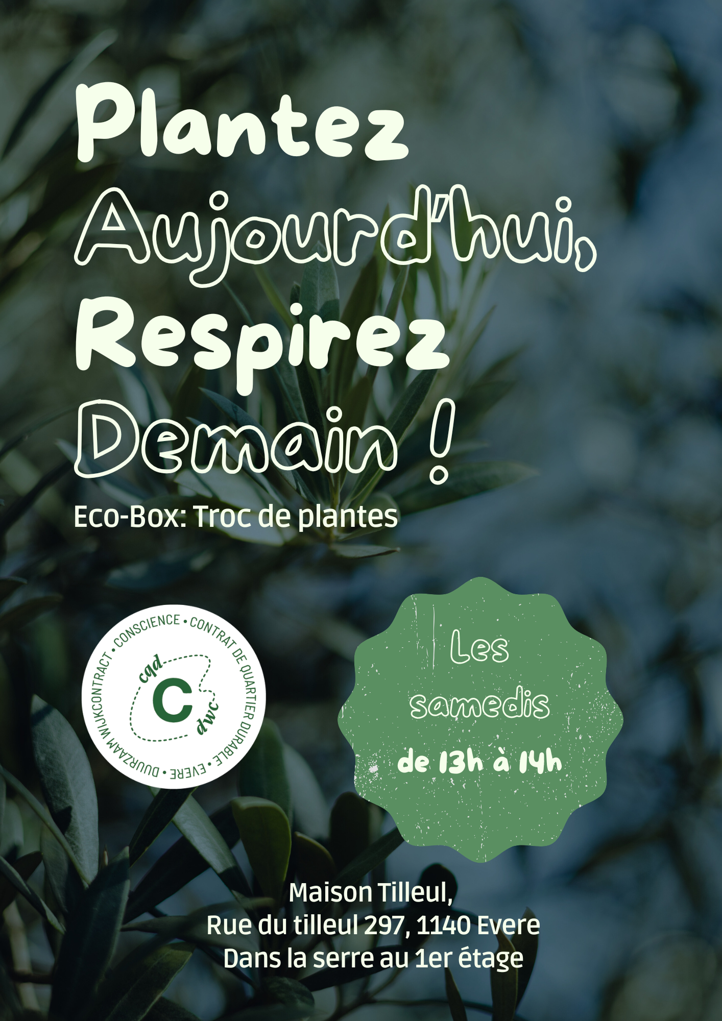 [NL] Kom de nieuwe Eco-box ontdekken in de kas op de eerste verdieping van Maison Tilleul. Daar is een ruimte ingericht voor het ruilen van planten, waar iedereen stekjes, planten, potten en tips kan uitwisselen, delen en doorgeven. Een klein burgerinitiatief van Mélanie om samen solidariteit, biodiversiteit en het plezier van de band tussen buren te bevorderen.